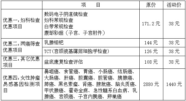 本次活動時間為4月10日至5月25日。為回饋廣大女性朋友的支持,承辦方莆田盛興醫(yī)院在體檢項(xiàng)目上也做了升級,由去年的婦科常規(guī)檢查,到今年增加了盆底康覆項(xiàng)目與女性腫瘤易感基因檢測項(xiàng)目。